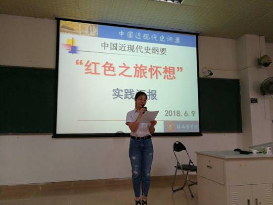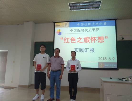 2018年6月9日上午,来自2017级本科班的16支《中国近现代史纲要》实践活动代表队,聚集在学院第二教学楼101教室,举行了“红色之旅怀想”实践活动成果汇报会,马克思主义学院党委书记吴建辉、副院长蒋红艳、《中国近现代史纲要》教研室黎同柏博士(教研室负责人)、陈洪波副教授、张开震讲师等教师和近200名同学全程观摩了实践汇报。汇报会由海南医学院第二届校园“金话筒”主持人大赛一等奖得主——17级管理学院王志玥同学主持。