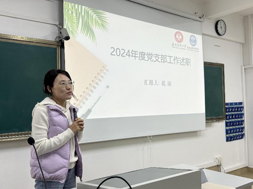 在考核会上,黎同柏首先对《马克思主义学院(人文社会科学部)2024年度党组织书记抓基层党建工作述职评议考核实施方案》作了说明,并对现场述职提出了要求。随后,中国化与德法党支部书记范琼、纲要与形策党支部书记蒋红艳、马基原理党支部书记罗丽娟和人文党支部书记吕倜然先后上台,对2024年抓党建工作情况做了现场述职。