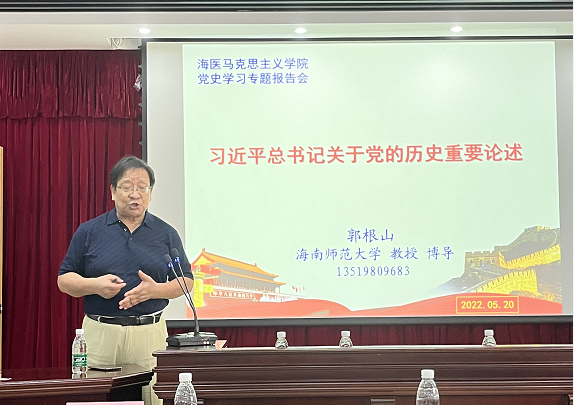 在成立大会上,雷浩泽带领全体参会人员在党旗下重温了入党誓词,庞小曼代表主办单位介绍了 “党员素质提升计划”协作联盟成立的目的、意义和工作计划,马克思主义学院教师党员邓少柳代表全体党员发言,表达了对参与“党员素质提升计划”的期待和决心。随后,马志健代表学校党委表达了对“党员素质提升计划”及其成立协作联盟的支持,并对基层党建工作创新发展提出了具体要求。成立大会结束后,举办了“党员素质提升计划”协作联盟的首场报告会,邀请海南师范大学教授、博士生导师郭根山做了一场《习近平总书记关于党的历史重要论述》的专题报告。在报告中,郭根山教授用生动活泼的语言,引述精炼、真实的史料,通过辩证、透彻的分析,对习近平总书记关于党的历史重要论述进行了准确的解读,为现场听众奉献了一场精彩的思想盛宴,也为“党员素质提升计划”创造了良好的开端。整场报告引人入胜、精彩不断,现场听众受益匪浅,一致对报告给予高度评价。