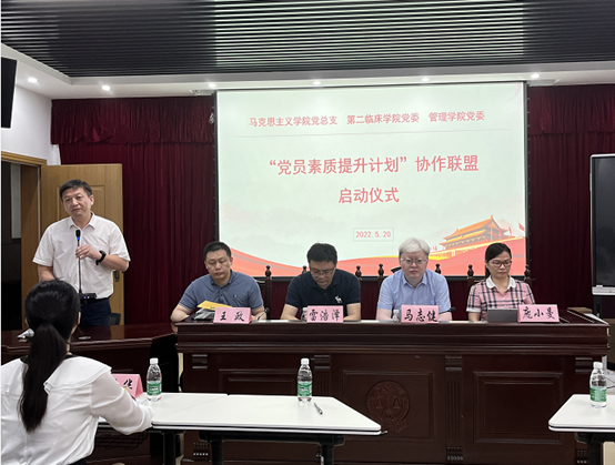 5月20日上午,由马克思主义学院党总支、第二临床学院党委和管理学院党委联合发起的“党员素质提升计划”协作联盟,在马克思主义学院学术活动中心举行了成立大会,并举办了首场报告会。成立大会由马克思主义学院党总支党总支副书记黎同柏主持,海南医学院党委委员、副校长马志健,海南医学院党委宣传部、统战部部长、马克思主义学院党总支书记雷浩泽,第二临床学院党委副书记庞小曼,管理学院党委党委副书记王政,马克思主义学院副院长邹庆华,以及来自马克思主义学院、第二临床学院和管理学院的教师党员和学生党员代表共60多人参加了会议。
