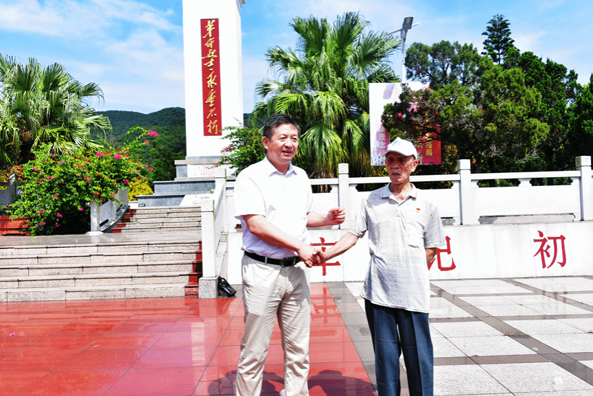 老党员为考察组讲述六连岭斗争故事
