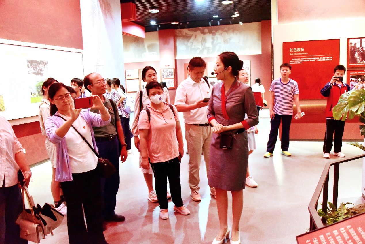 听取红色娘子军斗争历史的讲解