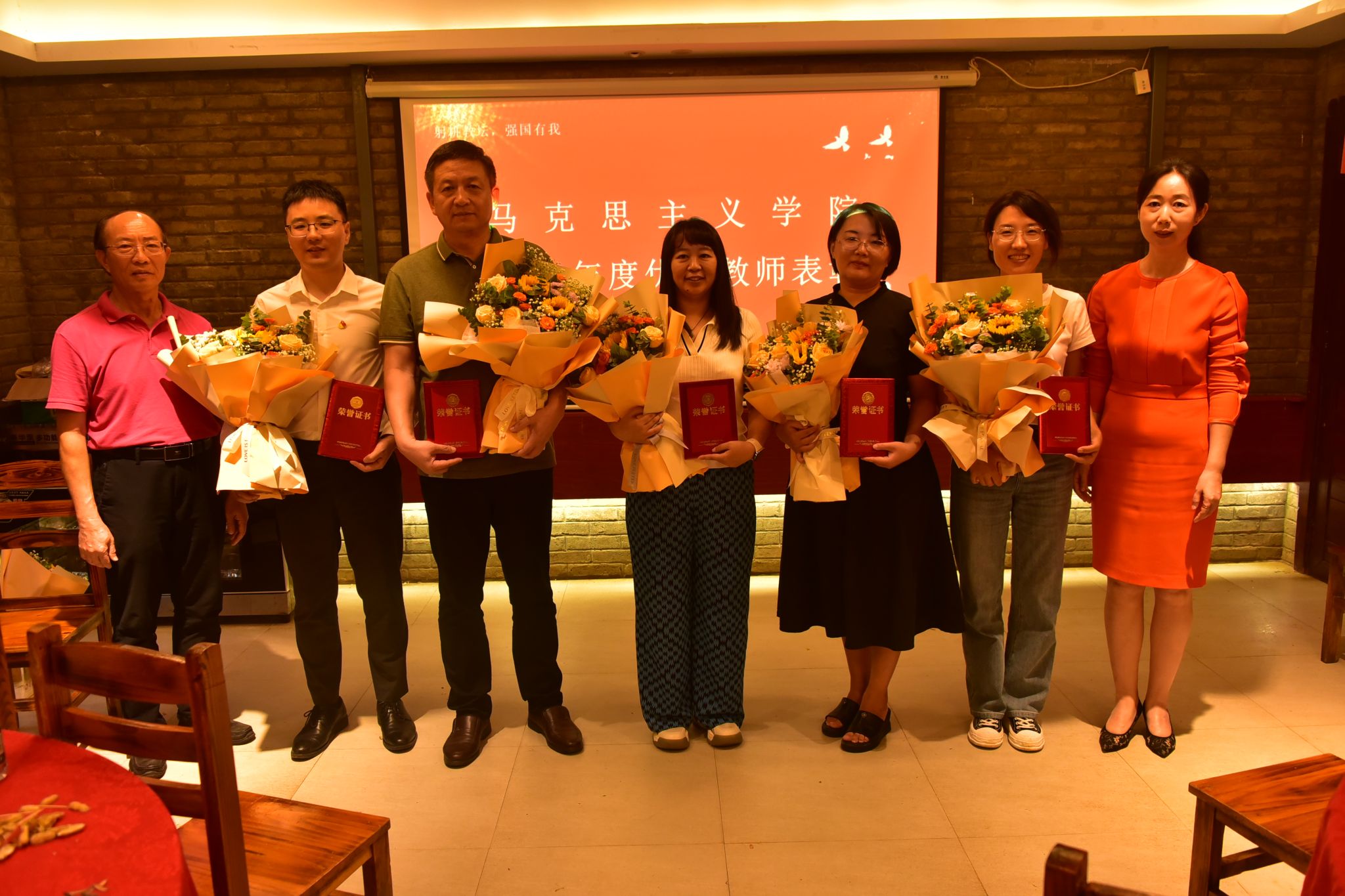 首先,王身坚宣读了《中共海南医学院马克思主义学院总支部委员会关于表彰优秀教师的决定》,授予马黛丹、余敬、张祥永、范琼、黎同柏五位教师马克思主义学院“优秀教师”称号,并向获奖的五位优秀教师颁发了证书,范琼老师代表优秀教师发表了获奖感言。