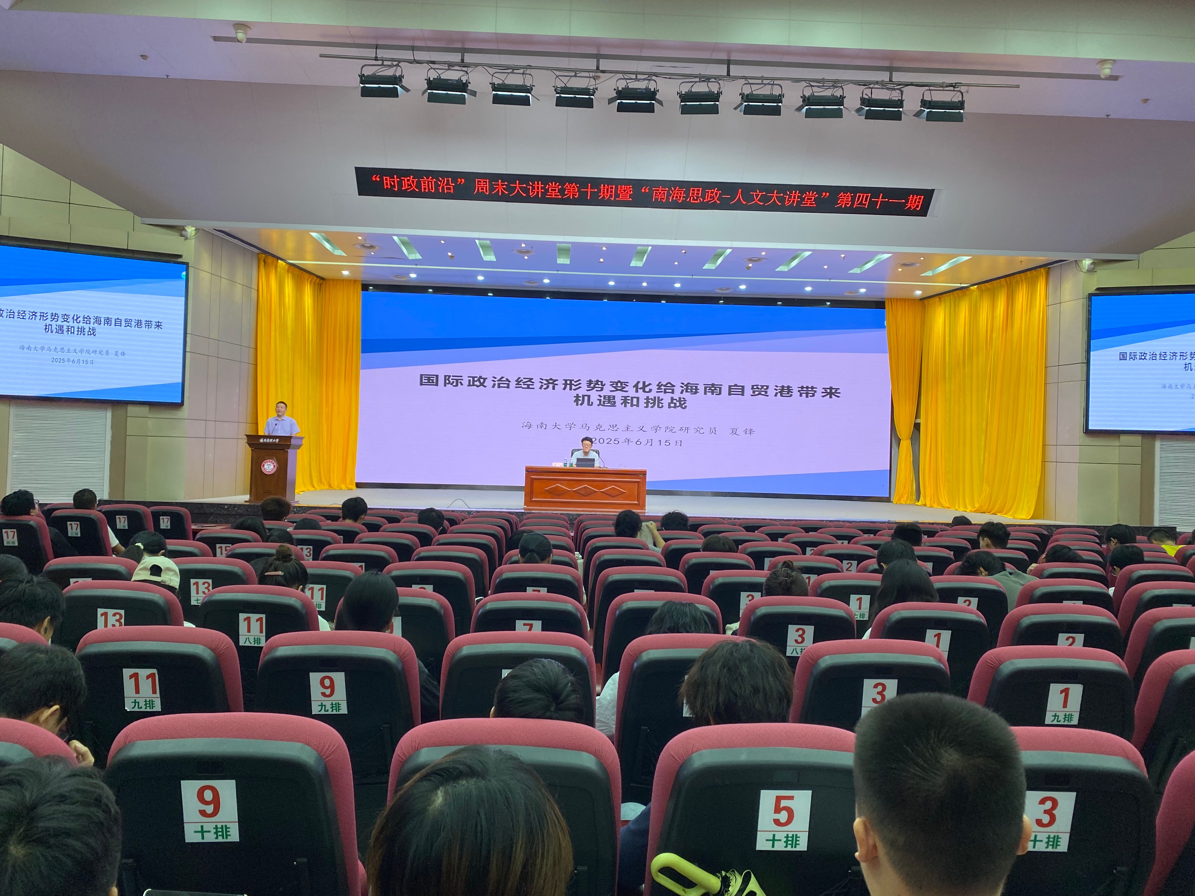 2025年6月15日晚,“时政前沿”周末大讲堂第十期专家讲座在taptap点点官网立德厅举办,特邀海南大学马克思主义学院夏锋教授作专题报告。在两小时的讲座中,夏锋以“国际政治经济形势变化给海南自贸港带来机遇和挑战”为主题,通过世情动荡、国情稳固、省情攻坚三大维度展开深度剖析。马克思主义学院(人文社会科学部)党总支副书记黎同柏主持活动,400余名师生现场聆听。