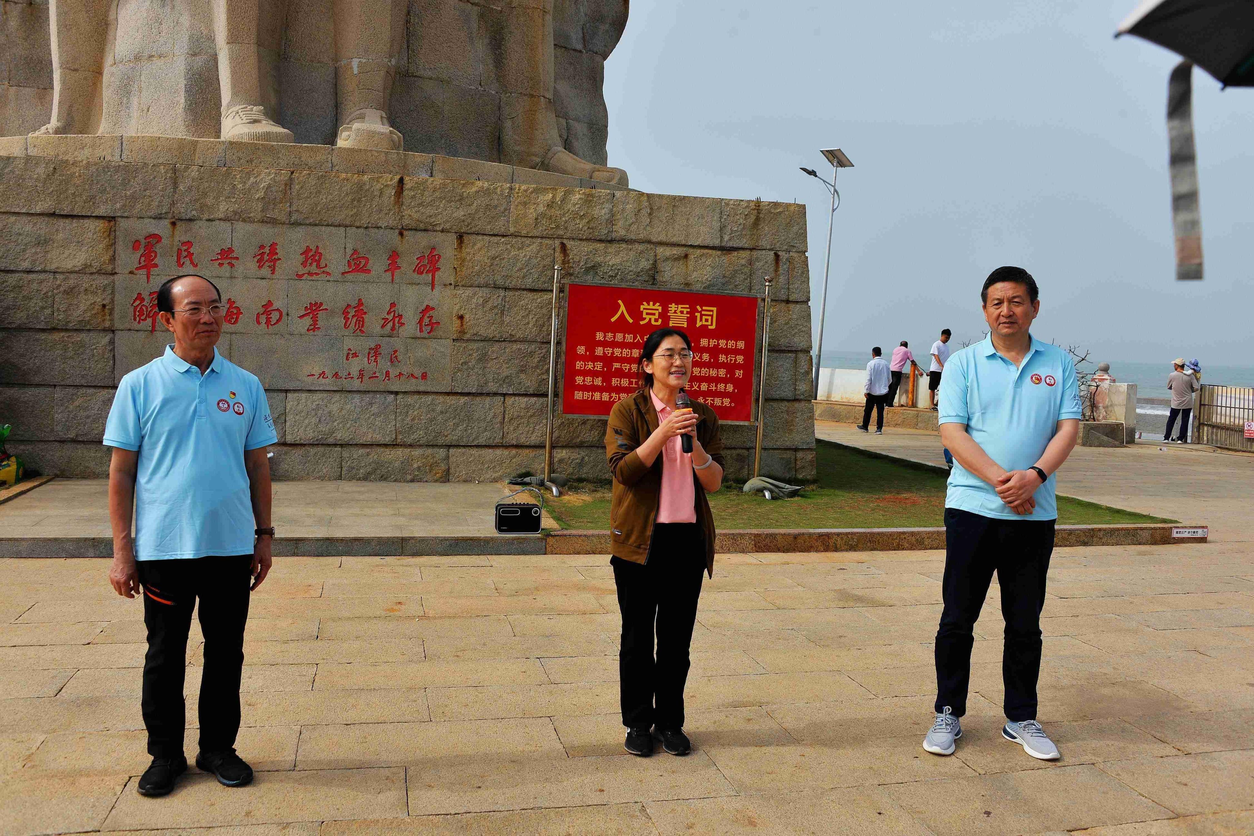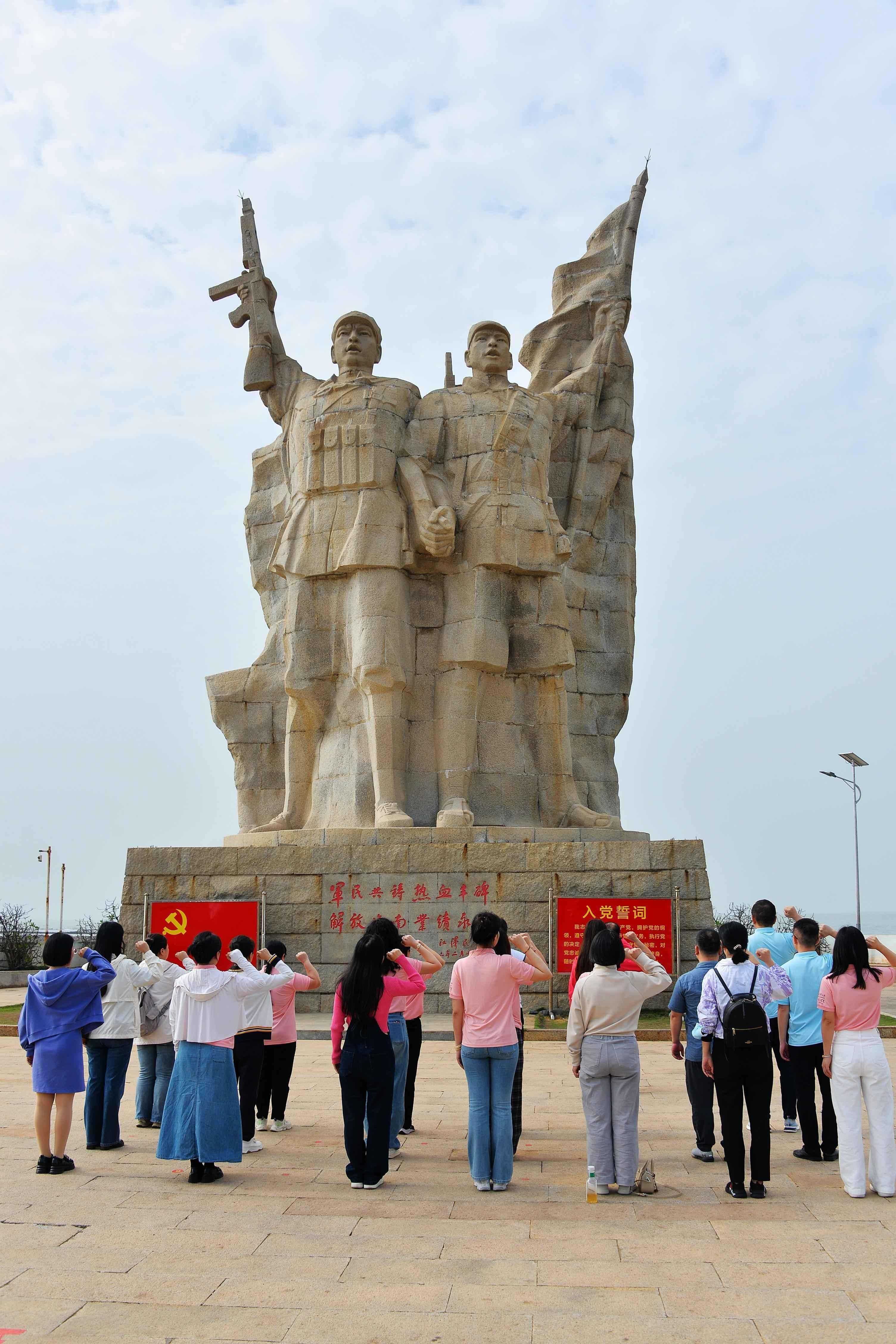 下午,师生转赴临高角解放公园研修。在解放海南临高角登陆纪念馆内,讲解员通过珍贵史料与影像,生动还原1950年解放军以木帆船强渡琼州海峡、创造“小木船战胜铁甲舰”战争奇迹的壮烈历史。随后,全体师生移步“热血丰碑”渡海英雄纪念雕像前,蒋红艳、邓少柳两位教师以生动的语言,带领师生穿越时空,重温“二十三年红旗不倒”的琼崖革命史诗与木帆船破浪强渡的渡海战役壮举。活动中,教师党员面向党旗重温入党誓词,铿锵誓言回荡于纪念碑上空,激荡起赓续红色血脉的使命共鸣。现场还开展了中国近现代史知识有奖竞答,学生踊跃抢答,在问答中围绕东坡文化、海南解放战役、琼崖纵队等主题展开思维碰撞,深化了历史认知。