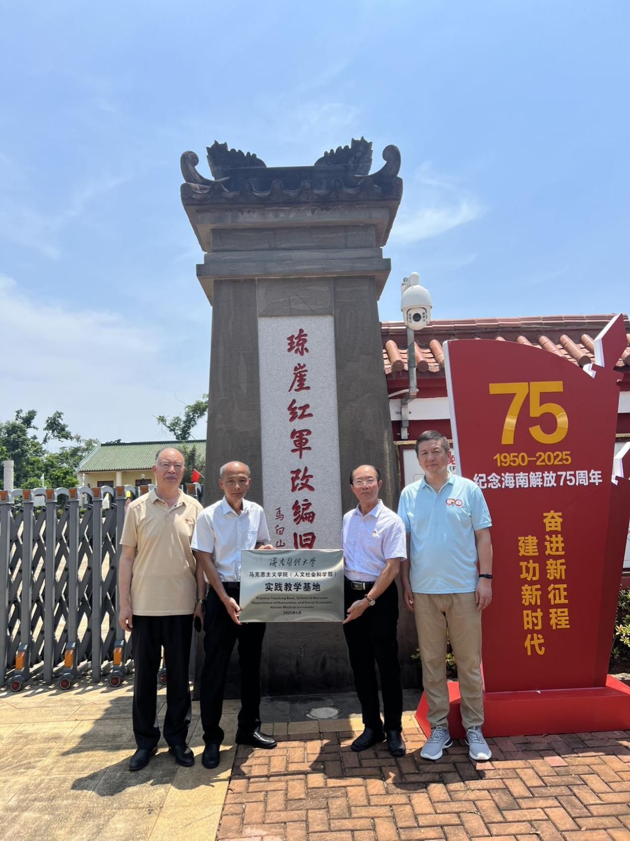 2025年5月9日,taptap点点官网马克思主义学院(人文社会科学部)党总支书记王身坚、院长周书俊、副书记黎同柏,及各教研室主任、秘书等一行14人,赴琼崖工农红军云龙改编旧址参观学习,并为taptap点点官网马克思主义学院(人文社会科学部)实践教学基地挂牌。