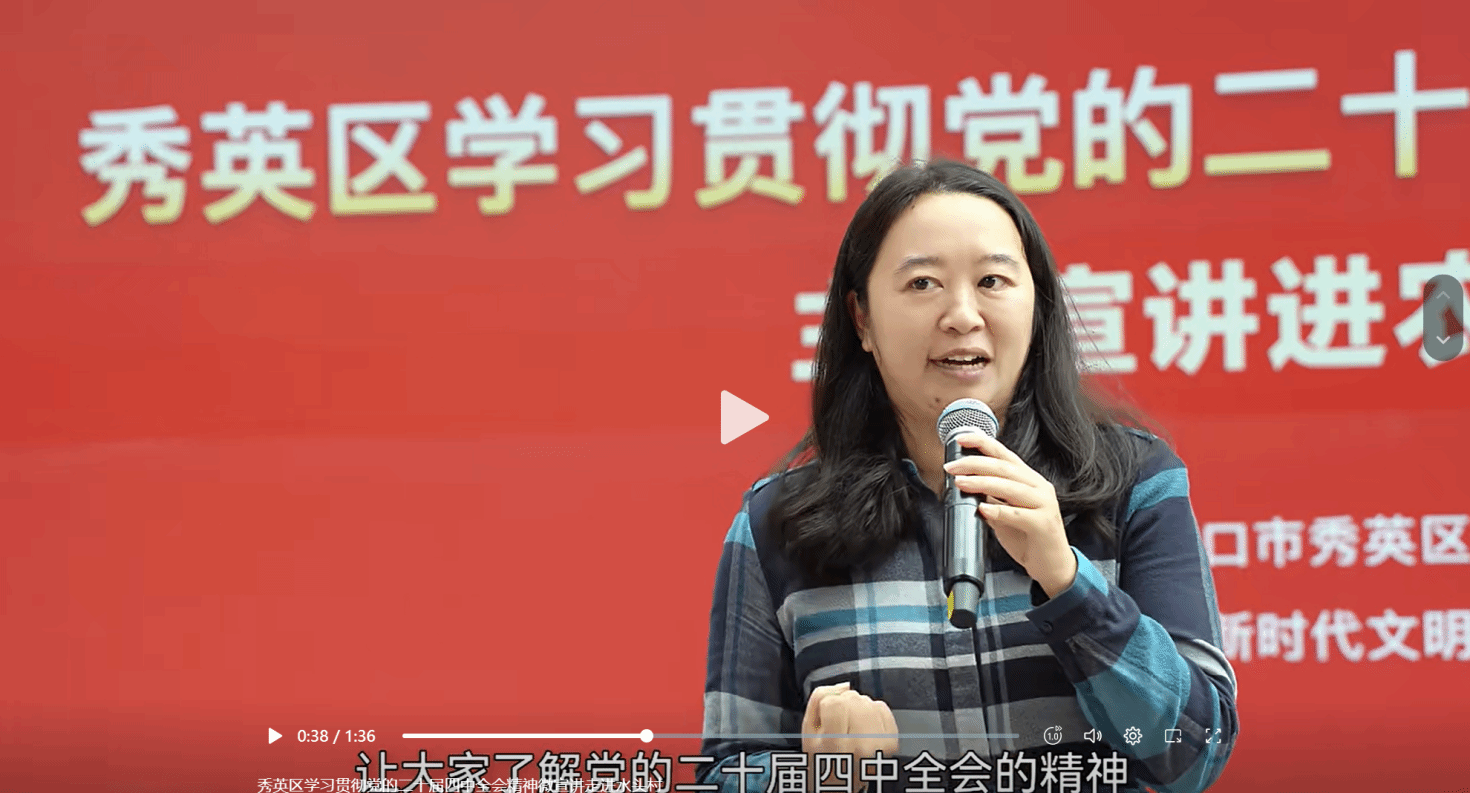 2025年11月16日海口市秀英区水头村党群服务中心的大门前掌声阵阵。一场为水头村村民举办的学习贯彻党的二十届四中全会精神主题宣讲活动在这里上演。这个活动与艺术表演相结合,还有热心的大学生志愿者,为村里的老人与儿童带来了政策与知识的普及,让理论知识宣讲充满了生活温度与情感共鸣。