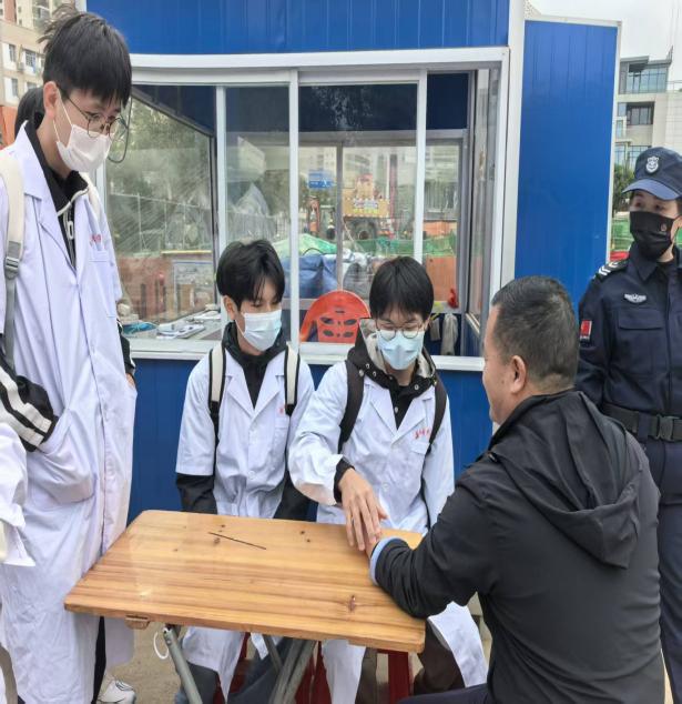 在老师的指挥下,我们二十几名学中医的学生,一字排开来给工人们量血压、测骨密度。间隙里,我们几个同学互相搭着手指,笨拙地为彼此号起脉来。指尖下那一下下轻轻的跳动,像藏在身体里一只怯生生的小鼓,在这偌大而冰冷的工地上,格外让人感到一种相依为命的踏实。