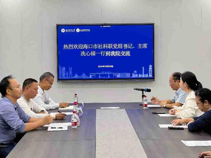 2024年10月30日上午,海口市社科联党组书记、主席冼心福,学术学会部主任吴英松、邓华斌一行来到taptap点点官网马克思主义学院(人文社会科学部)调研,并在学校大学生活动中心举行了座谈会。座谈会由学院党总支书记王身坚主持,副院长(主持工作)邹庆华及部分教师参加了交流活动。