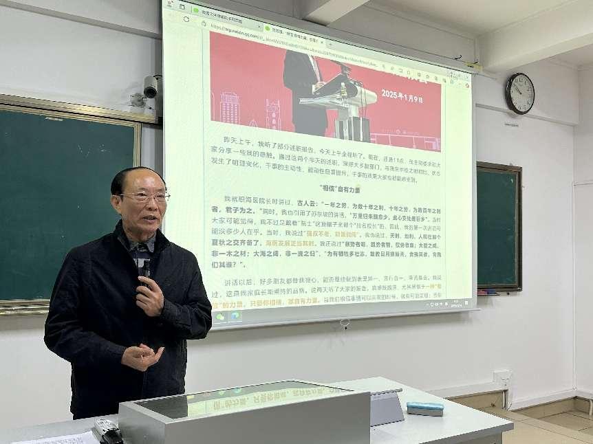 随后,王身坚书记带领全体教师集体学习了陈国强校长在2024 年度中层干部述职大会上的话《“相信”自有力量,态度决定一切》的实录节选。王身坚书记强调,态度决定一切他呼吁马院全体教要深刻领会陈国强校长的讲话精神,学懂弄通做实,理解改革、拥护改革、支持改革,并以这个基本姿态营造真正追求卓越、守正改革的良好生态,进而拥有一个良好的心态,解放思想,改变观念,提升能力,主动作为,积极投身到推动学院和学校实现高质量发展的各项工作中,实现更多的获得感、幸福感、安全感。