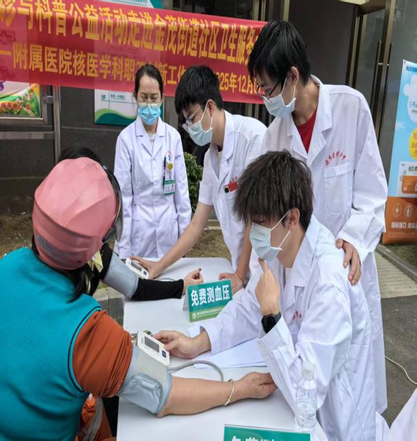 在老师和医护人员的指导下,同学们分组为社区居民提供健康检测服务。活动现场,志愿者们成为最温暖的风景线。同学们为行动不便的居民搬来椅子,检测后主动搀扶;为听力不好的老人重复讲解,用方言拉近距离;为年轻居民制作“健康管理小贴士”,将服务延伸至日常。一位参与活动的奶奶拉着同学的手说:“你们就像我的孙子孙女一样,测完血压还教我怎么吃降压药,这份心意比药还管用!”活动结束后,同学们分享了各自的收获:从“不敢下手”到“熟练操作”,同学们用行动证明志愿服务不是简单的付出,而是通过专业能力实现社会价值的升华。在为居民服务的过程中,同学们学会了换位思考。一位同学说:“当老人拉着我的手说‘谢谢’时,我真正理解了医者仁心的含义,志愿服务让我找到了学习的意义。”一位同学在日记中写道:“未来,我要把志愿服务变成一种习惯,用所学知识帮助更多人。”此次义诊实践活动,不仅是一次技能练兵,更是一堂生动的社会责任课。同学们用行动证明:青春的价值在于服务他人,成长的意义在于回馈社会。