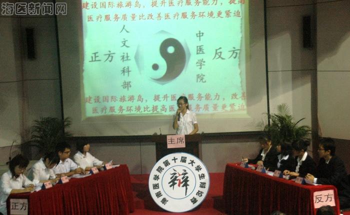 为了培养大学生的思辨能力,营造良好的学术氛围,海南医学院在多功能报告厅举行了第十届大学生辩论赛。此次大赛的主办方为海南医学院团委、人文社科部,承办方为海南医学院学生会。本届辩论赛分三个阶段:初赛、复赛和决赛,时间分别为12月5日、11日、12日。