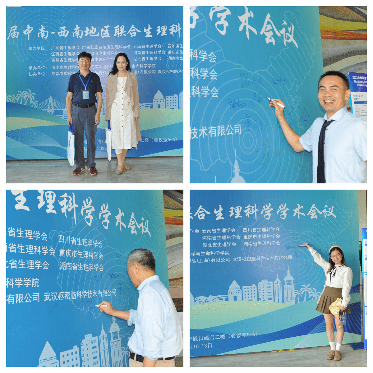 中国生理学会理事长王韵教授在背景板签名及留影