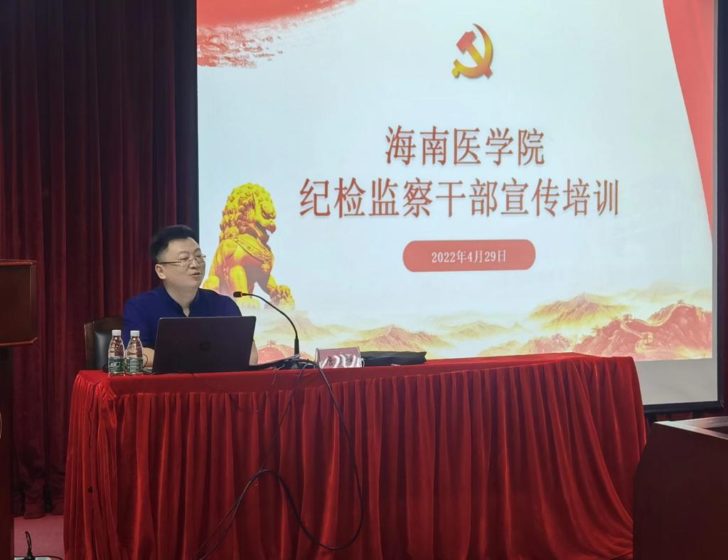 4月29日上午,学校纪委(监察专员办)在图书馆七楼学术报告厅举行纪检监察干部宣传培训会。培训会上,海南省纪委监委宣传部副部长詹君峰作题为《实事求是 守正创新 以强有力的宣传教育筑牢思想防线》的专题讲座。校党委委员、纪委书记、监察专员罗杰出席会议,学校纪委委员、纪检监察干部共70余人参加会议。会议由纪委副书记、纪检监察一处处长肖红秀主持。