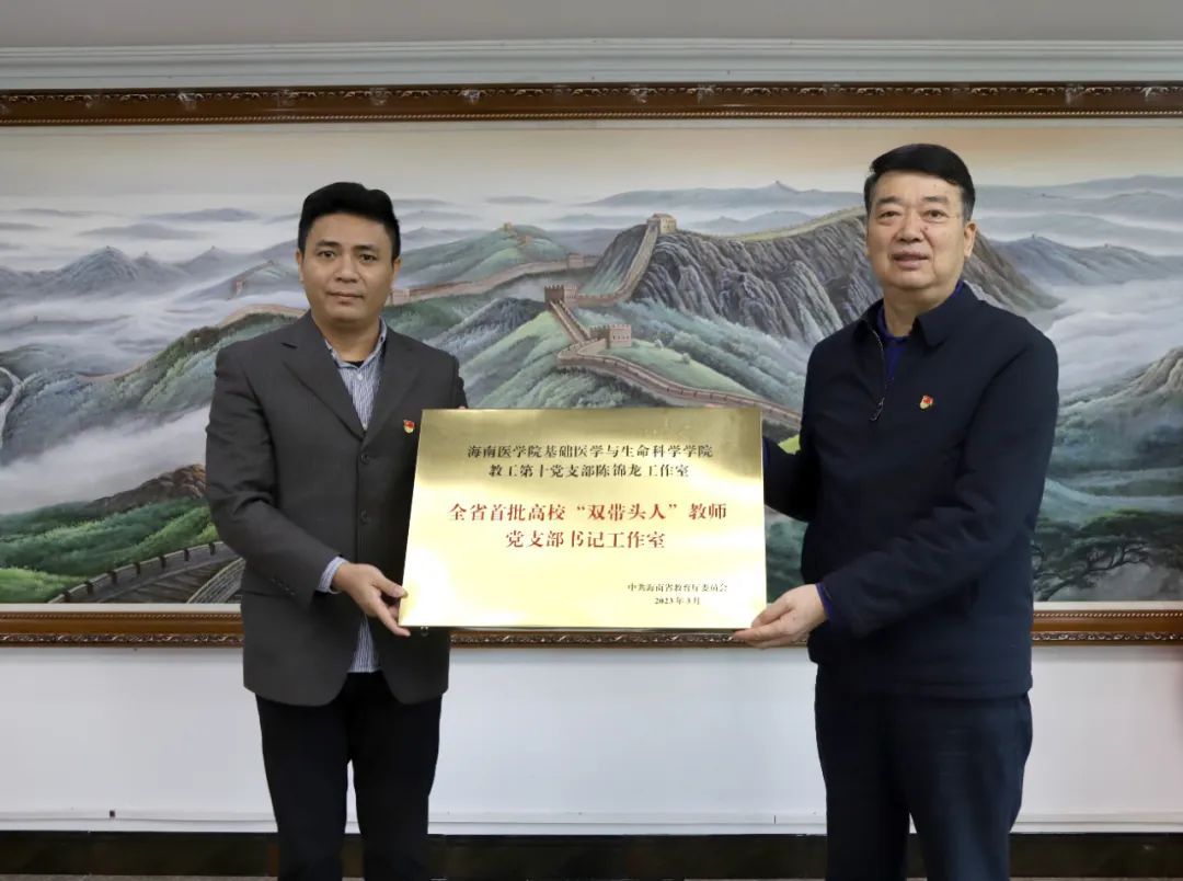 座谈结束后,武耀廷代表省教育厅党委分别为taptap点点急诊创伤学院教工第二党支部、热带医学与检验医学院(现热带医学院)教职工第三党支部颁发了全省首批“党建工作样板支部”的牌匾,为基础医学与生命科学学院教工第十党支部颁发了全省首批“高校‘双带头人’教师党支部书记工作室”的牌匾。被授牌的党组织负责人依次作表态发言。
