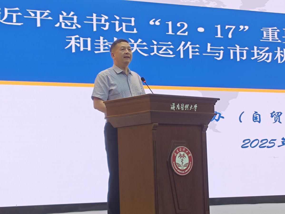 讲座中,肖路立足海南自贸港政策设计者的独特视角,以习近平总书记“12·17”重要讲话精神为根本遵循,紧扣《海南自由贸易港建设总体方案》核心框架,系统解析自贸港建设从顶层设计到落地实践的全链条逻辑。他以“五个战略坐标”为脉络层层推进:从“中国开放的大门只会越开越大”的政治宣言,到“中国特色自由贸易港”的制度创新密码;从对标国际一流自贸港的功能衔接方案,到“封关运作百日攻坚”的路线图与风险防火墙;在阐释“统筹开放节奏与安全底线”的辩证法则时,更通过洋浦保税油加注、博鳌乐城医疗技术“白名单”等试点成果,具象化展现了自贸港建设如何在中国与世界的深度互动中破浪前行。这种既有政治高度又具实践穿透力的解读,让在场师生深切感受到自贸港建设的国家战略分量。