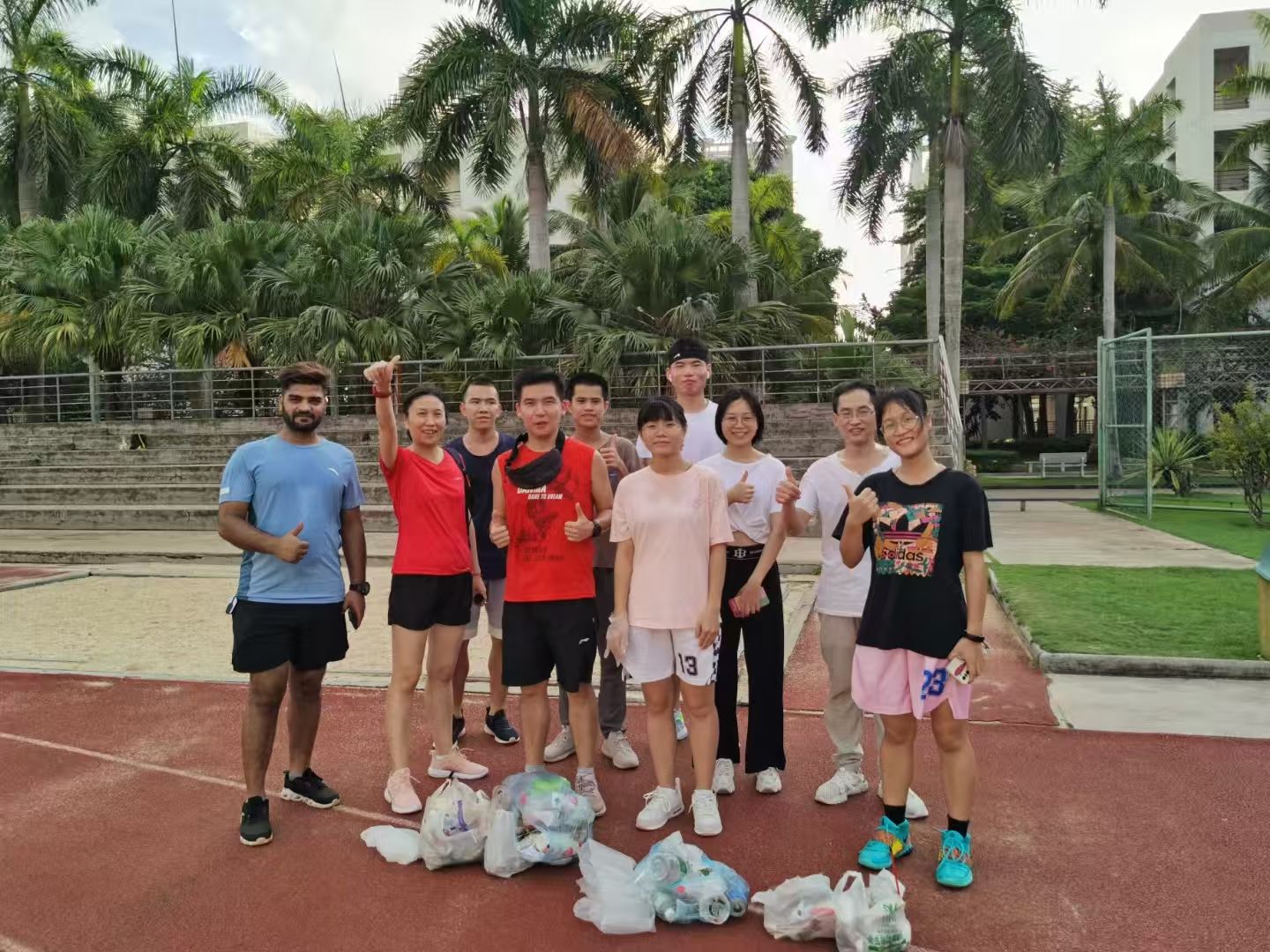 杨国静和同事同学们一起“捡跑”