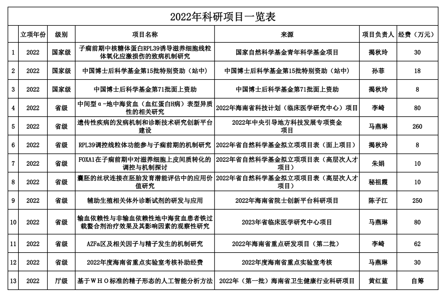 2022年科研项目