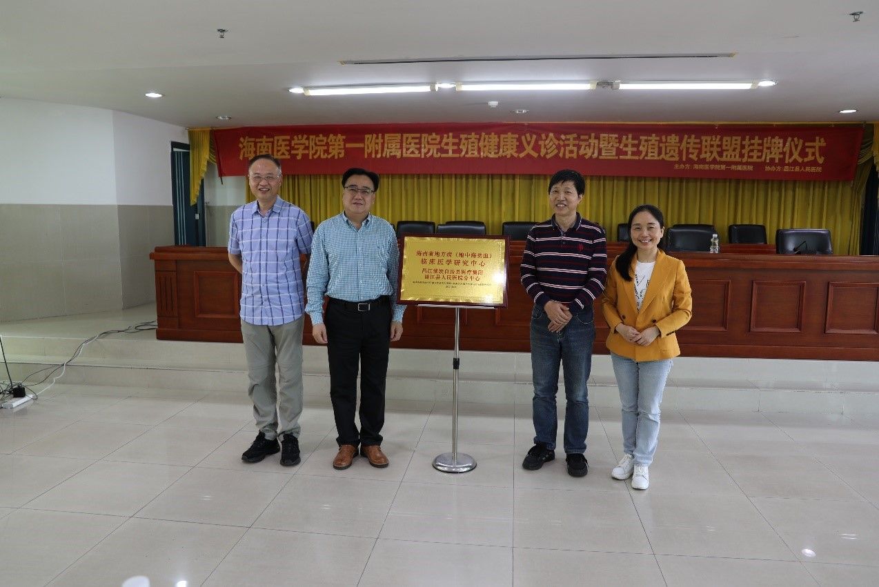 2023年2月10日,海南医学院第一附属医院生殖科、海南省医学会生殖医学分会联合昌江黎族自治县医疗集团昌江县人民医院开展了“心系病患,传递温暖”为主题的义诊活动, 旨在将生殖健康知识普及到基层。同时,由海南医学院第一附属医院牵头成立的海南省地方病(地中海贫血)临床医学研究中心昌江县人民医院分中心正式揭牌成立。地中海贫血临床研究中心的建设目标是将该中心建设成为覆盖全省的地中海贫血防控和治疗的网络平台,前期已建立的分中心有海南省妇幼保健院分中心、海南医学院第二附属医院分中心、海南和泽生物科技有限公司分中心、海南省肿瘤医院分中心、三亚市妇幼保健院分中心、海南医学院附属海南医院分中心、儋州市人民医院分中心、东方市人民医院分中心、乐东县第二人民医院分中心等10多家单位。此次建立的分中心为昌江黎族自治县医疗集团昌江县人民医院,昌江分中心的建立,不仅有利于地贫的防治工作开展,也有利于加强各单位之间的交流,促进海南的医疗发展,更好的服务自由贸易港的建设。