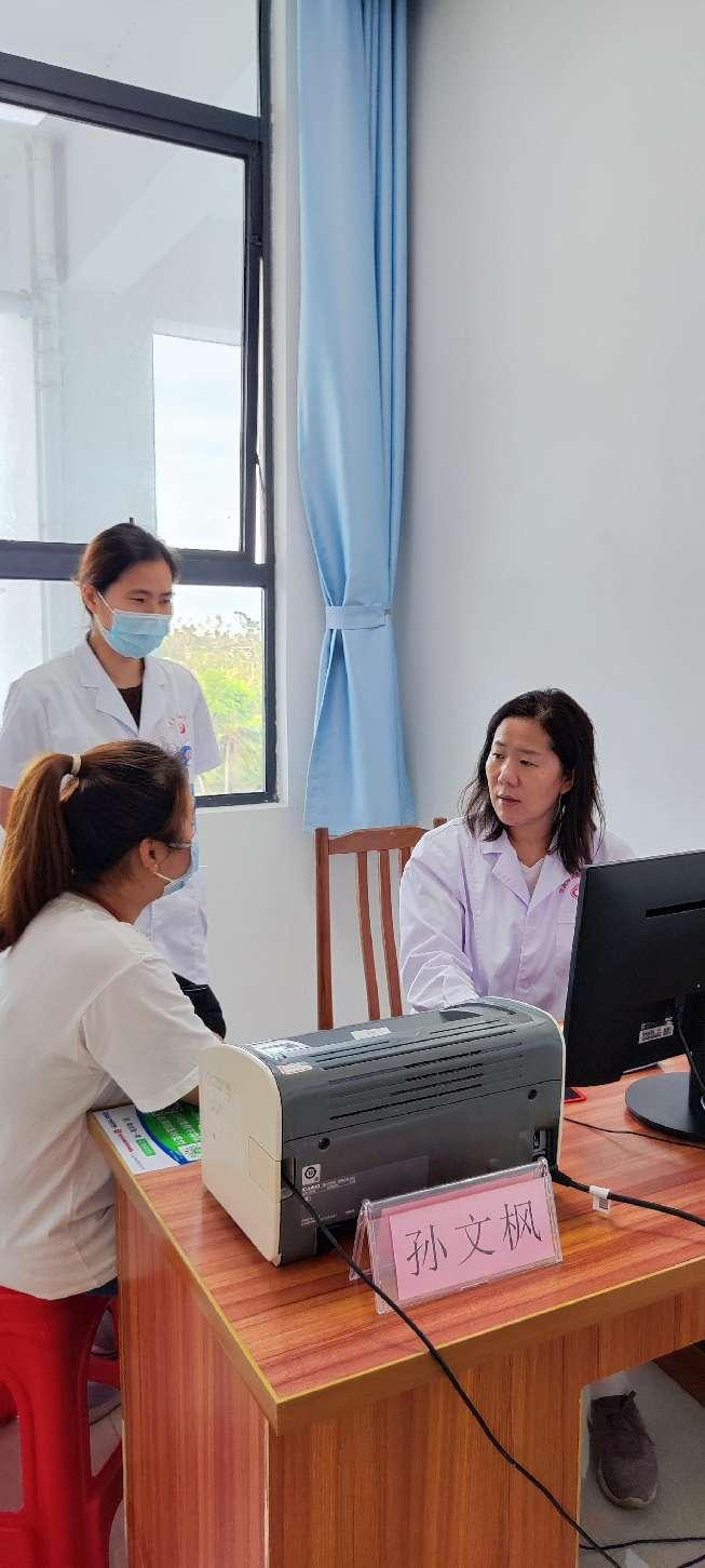 现为落实琼卫〔2024〕22 号《海南省青年医护基层惠民志愿服务行动实施方案》文件,按照“功能明确、作用明显、长期奉献”的原则开展面向全省居民的志愿服务,进一步培养青年医护人员、医学专业学生为民服务情怀和志愿服务精神,激发青年医护人员爱岗建功的职业情操,提高人民群众卫生健康获得感和满意度,我科联合文昌市卫生健康委员会于2024年10月25日在生殖联盟医院--文昌市庆龄妇幼保健院再次开展了“心系病患,传递温暖”为主题的义诊活动本次义诊旨在将生殖健康知识普及到基层,让更多的家庭在不孕不育治疗过程中少走弯路,更优质地服务于文昌市及周边地区的患者,在家门口即可享受到省内顶级专家的优质医疗资源。此次义诊团队均为我科不同专业的顶级专家,参加义诊的专家有:海南医科大学第一附属医院生殖医学中心首席专家黄元华主任医师,生殖中心病区负责人黎明鸾主任医师及高年资临床医师孙文枫副主任医师,义诊B超由孙文枫医师负责做