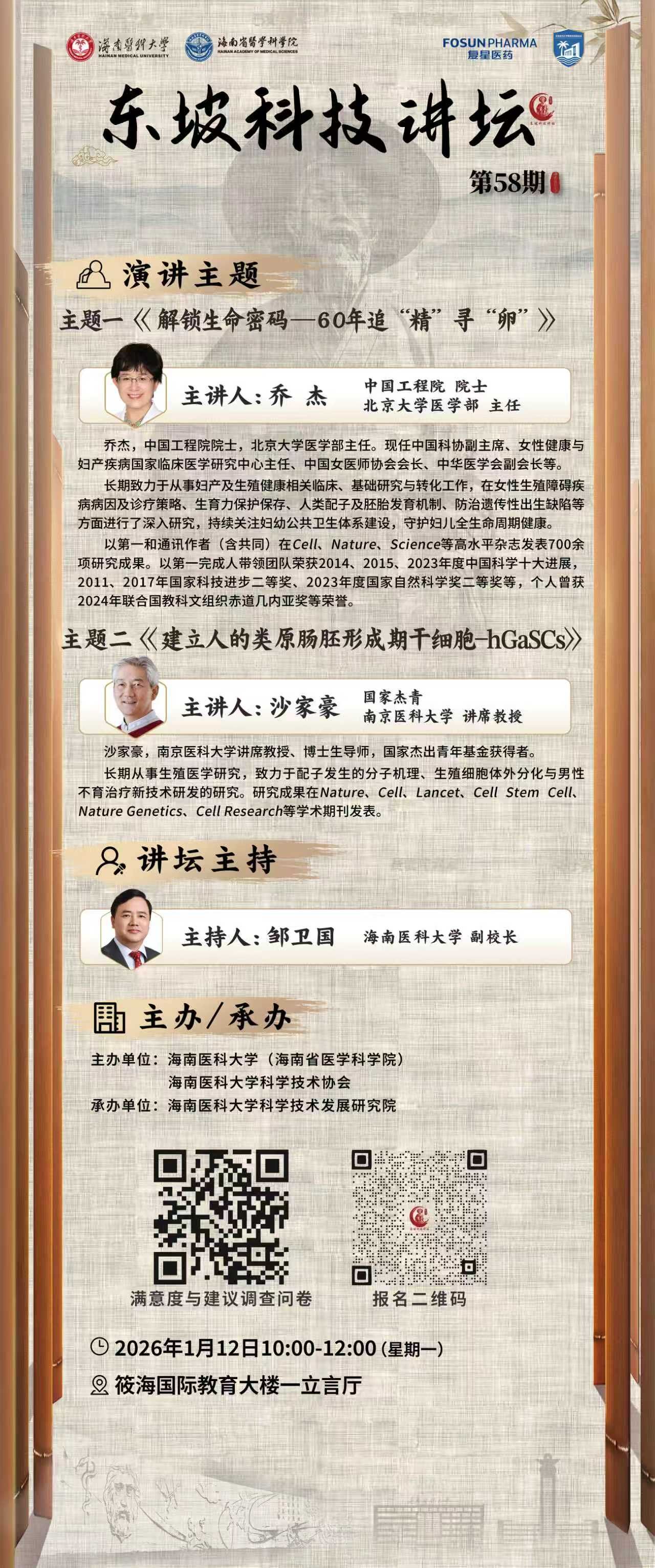 学术沙龙通知——东坡科技讲坛第58期生殖专场