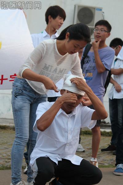 现场同学们都认为,关乎生命的急救技术的学习机会不容错过,纷纷要求亲手体验心肺复苏的按压环节和包扎止血。志愿者就利用模型,手把手的向同学们传授急救知识,通过实际操作让学生掌握必备的自救互救知识。