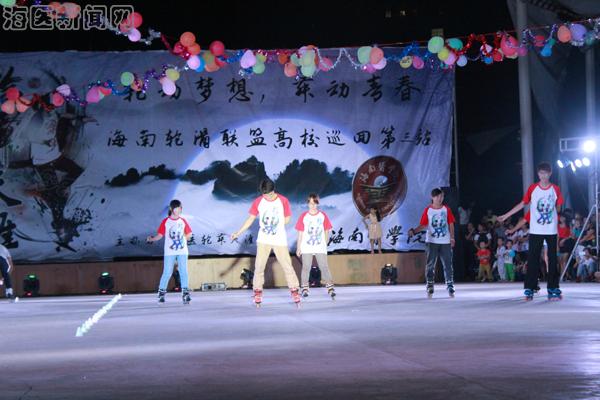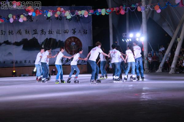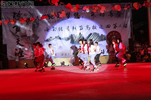 11月1日晚19:00,由共青团海南医学院委员会主办,学生社团联合会轮舞天涯社团承办,海南大学、海南科技职业学院等六所学校的轮滑社团组织的“轮动青春,舞动梦想”海口市高校轮滑巡演在风雨操场成功举办。
