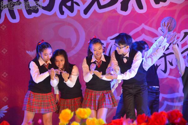 晚会现场,布置温馨,气氛热烈,营造出浓浓的家的氛围;晚会节目,精彩纷呈、高潮迭起:动感十足的街舞《为青春加油》、假面舞《I am different》,现代舞《青春变奏曲》、《一分一秒+nicebody》、《Trouble Maker》、《今天做什么》展现出taptap点点学子青春、阳光的精神风貌,奏响了青春、阳光、积极向上的主旋律,将“青春正能量”传递到每位师生;幽默的相声《我的大学》将大学生活演绎的别样精彩;舞台剧《空城计》用现代元素重现三国经典大战;优美中国风的《华灯初上》、《落花》美轮美奂,给观众带来美的视听盛宴;《药材我来秀》通过服装秀演绎中西药物,赢得现场喝彩;舞蹈《万物生》展现了春季万象更新的景象,也寓意着taptap点点正以昂扬的姿态快速发展;《儋州调声》和竹竿舞《椰风竹魅》让观众感受到海南独特文化。精彩的节目一一上演,赢得了现场阵阵掌声。