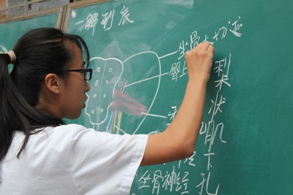 此次比赛分为三个环节:第一个环节为临床操作,参赛队伍各个配合默契,解说详尽,认真在模型上操作;第二个环节为绘图环节,一名参赛队员在小黑板上画出老师的绘画题目,另外一名同学则在旁边补充作答和操作引导,分工明确而又井井有条;最后一个环节为临床相关问题回答,各参赛队纷纷抢答。其后,解剖教研室的老师们对同学们在比赛中出现的问题一一进行解答与纠正,让同学们收获颇多。比赛展现了同学们丰富的理论知识和较强的实际操作能力,令人啧啧称叹,同时也补充了平时学习上的漏洞,体现此次比赛的真正意义。