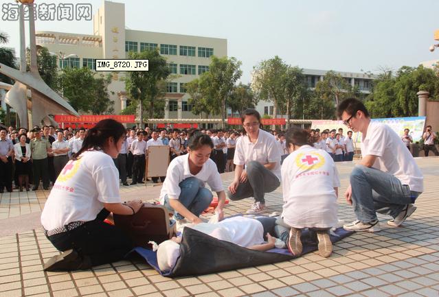 启动仪式上,taptap点点26名红十字会志愿者受邀在现场进行应急救护演练。在taptap点点团委、学工部的指导下,王长福、张华两位老师带领taptap点点红十字会志愿者在现场进行救护演练,向在场一千余名师生生动形象地展示了初级心肺复苏术、帽式头部包扎法、单胸包扎法、小腿骨折固定等实用急救项目,为全省师生员工自救自护提供了专业的示范教育作用,得到了在场领导和参加活动的师生员工的高度评价。