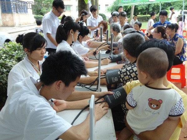 4月26日,在第26个“全国爱国卫生运动月”到来之际, 由共青团海南医学院委员会、海南医学院附属医院共同主办、校学生会承办的海南医学院第八届大学联合义诊活动在海口市金盘创业新村社区顺利举行。本次义诊活动的主题是“弘扬医学知识 传递爱心健康”,校学工部王长福老师、海南省边防总队医院医护人员、校学生会医学实践部、校针灸推拿协会等四十余名志愿者参加了此次活动,接诊200余人。