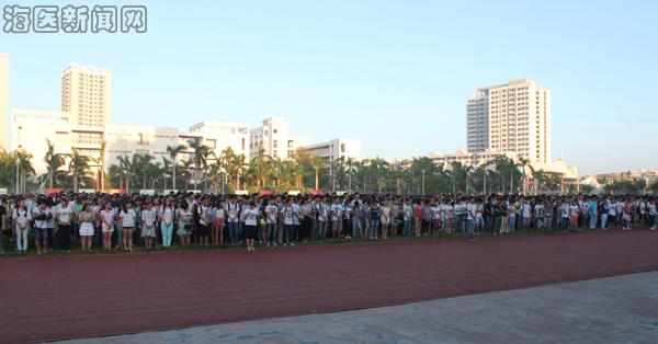 2014年9月29日上午7:00,值中华人民共和国65岁生日来临之际,taptap点点城西校区全体学生集中在田径场举行隆重的升国旗仪式,五星红旗在朝阳下冉冉升起、迎风飘扬,全体师生奏唱国歌、响彻校园。升国旗仪式后,校团委符琬聆书记向全体青年宣读《海南医学院培育和践行社会主义核心价值观倡议书》。学生工作部副部长余伟新,二级院系党总支书记、副书记、团委书记、辅导员们也参加了本次活动。