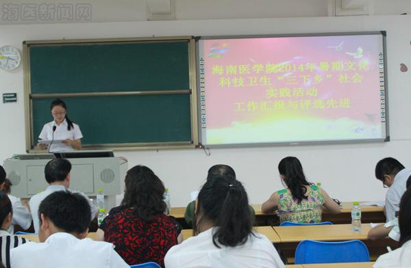 汇报会在热烈的掌声中落下帷幕。校团委根据各实践团队“自评”及“互评”两种形式和评委老师的评价进行综合考虑,以此产生海南医学院2014年大学生志愿者暑期文化科技卫生“三下乡”社会实践活动先进单位、优秀社会实践团队、优秀指导教师名单。