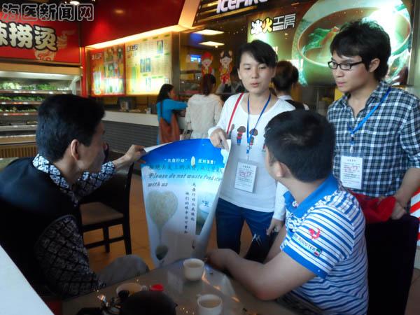 本次活动自3月4日拉开帷幕,中医学院青年志愿者协会会长贾川在升旗仪式上向全校师生发出倡议,鼓励大家积极参与到此次活动中。“光盘”行动为期2周,主要分为校内和校外活动,校内主要是在校园里和食堂里张贴“光盘”行动的宣传海报,引导大家文明用餐,倡导同学们参与“光盘”行动,减少浪费;校外主要是走进餐馆,为餐馆的工作人员及用餐者讲解此次活动的目的和意义,鼓动更多的人参与到此次活动,并经餐馆负责人允许后,在餐馆合适的位置张贴“光盘”行动海报。