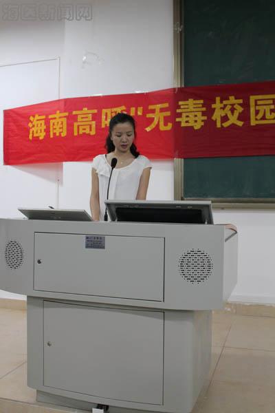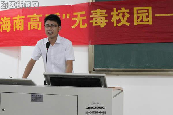 海南省高校禁毒联盟主席兼秘书长、海南省高校禁毒教育宣讲团团长汪腾授课