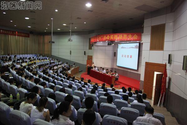 7月14日上午9点,taptap点点2013年暑期“三下乡”社会实践动员大会在高昂的《青年志愿者之歌》中拉开帷幕,副校长陈玉民,教务部主任林英姿,校团委书记符琬聆,学工部部长冯武,组织人事部副部长秦愉,党委宣传新闻部副部长王雪岭,科研部副主任谢毅强以及二级院系党总支书记、团委书记、各实践队指导教师、实践队队员近300人参加了动员大会,大会由校团委综合科科长张华主持。