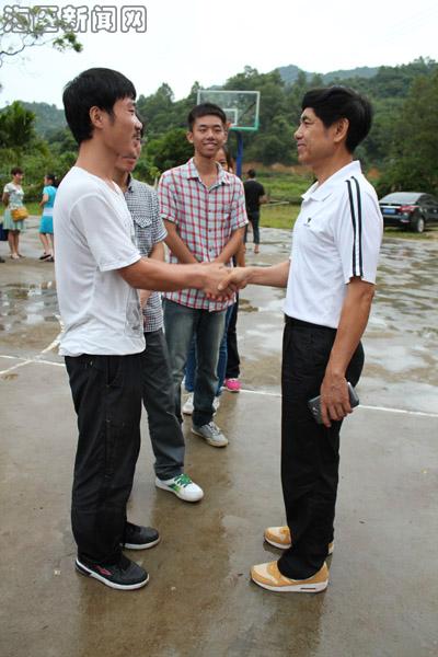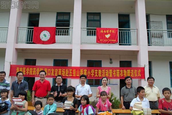 7月16日清晨,陈副校长一行就在和谐门集合,赶往五指山市毛道乡看望临床学院“扬帆起航 乡医为命——赴五指山市医疗服务队”,陈副校长一行受到五指山市卫生局局长陈飞的热情欢迎。义诊现场:队旗随风飘扬,宣传十八大精神的标语格外醒目,“提高综合素质、服务地方医疗;健康所系,性命相托”、“九个卫生好习惯”的活动展板十分精致,这些都烘托出热闹的义诊场面:村民们排着长队等候;社会实践队员们忙着维护秩序、宣讲健康小知识;义诊专家专注着为村民们诊治。看到这些,陈副校长露出欣慰的笑容,等义诊活动告一段落后,上前和义诊专家一一握手,和社会实践队员亲切交谈,当得知义诊团队将奔赴五指山市不同乡镇开展活动时,陈副校长鼓励大家不辞辛劳、认真实践、切实将先进的医疗服务送给基层人民。五指山的天说变就变,刚才还是艳阳高照,一下就乌云密布、大雨倾盆,经过短暂的休整后,陈副校长一行顶着恶劣的天气,沿着盘旋的山路,前往五指山市红山乡参加药学院“爱心支教”团队的捐赠仪式,五指山市教育局张忠局长、黄朝南书记热烈欢迎陈副校长一行。捐赠仪式上,陈副校长将书本和衣服送到当地小朋友的手中,并勉励他们好好学习,做祖国合格的接班人;在捐赠仪式后,陈副校长查看了实践团队厨房、宿舍,看到同学们艰苦的就餐环境、打着地铺,陈副校长嘱托大家注意健康和安全,用真心去服务当地的留守儿童。