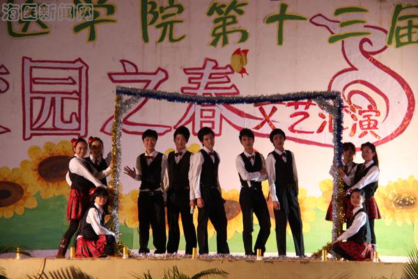 2011年12月10日晚8点,由校团委主办的海南医学院第十三届“校园之春”文艺汇演在学校田径运动场隆重举行。评委由中国舞蹈家协会会员、海南省音乐家协会副主席、国家一级编导吴勇,中国舞蹈家协会会员、海南省音乐家协会副主席、国家一级编导吴圣彪,中国音乐家协会会员、海南省音乐家协会理事、国家二级演员吴淑雅,海南省艺术教育促进会副会长、海南师范大学艺术学院艺术实践中心主任、副教授赵玺昌,海南大学艺术团艺术总监周琳琳担任。学校副校长陈玉民,校长助理牟忠林、黎岳南,校务委员何书光、周世标、林连波,学校各职能部门领导、各院系党政领导、团委书记、辅导员及2000余名学生共同观看了演出。