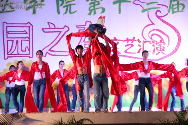 本次晚会以浓绿的葵叶、怒放的葵花、翩翩的蝴蝶点缀着整个舞台,营造出生机勃勃的活力。整场演出热烈而又充满激情、浪漫而又温馨,汇集了12个二级学院选送的14个内容丰富、形式多样的文艺节目,有舞蹈、小品、相声、快板等。精彩的节目赢得了现场阵阵掌声。