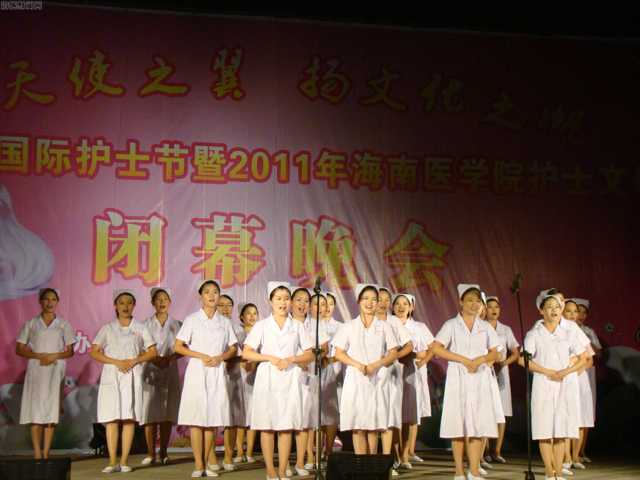 5月15日晚7:40分,国际护理学院和高等职业教育学院在风雨操场联合举办了主题为“展天使之翼,扬文化之帆”的“5.12国际护士节暨海南医学院护士文化节闭幕晚会”,跨度长达一个半月的护士文化节经历了授帽、钢笔字SHOW、护理技能操作比赛、看望英雄母亲、去养老院志愿者服务、去特殊学校志愿者服务等于今晚圆满落下帷幕。