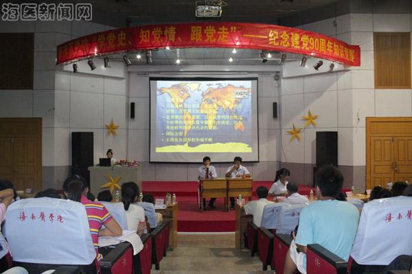 6月7日晚,由共青团海南医学院委员会、人文社科部联合主办,学生社团联合会承办的“学党史、知党情、跟党走”——纪念建党九十周年知识竞赛活动在taptap点点多功能报告厅隆重举行。莅临本次比赛的嘉宾有校团委符琬聆书记,各院、部(系)团委书记和辅导员。人文社科部万志全教授、郭健副教授、邓少柳老师担任本次比赛评委。