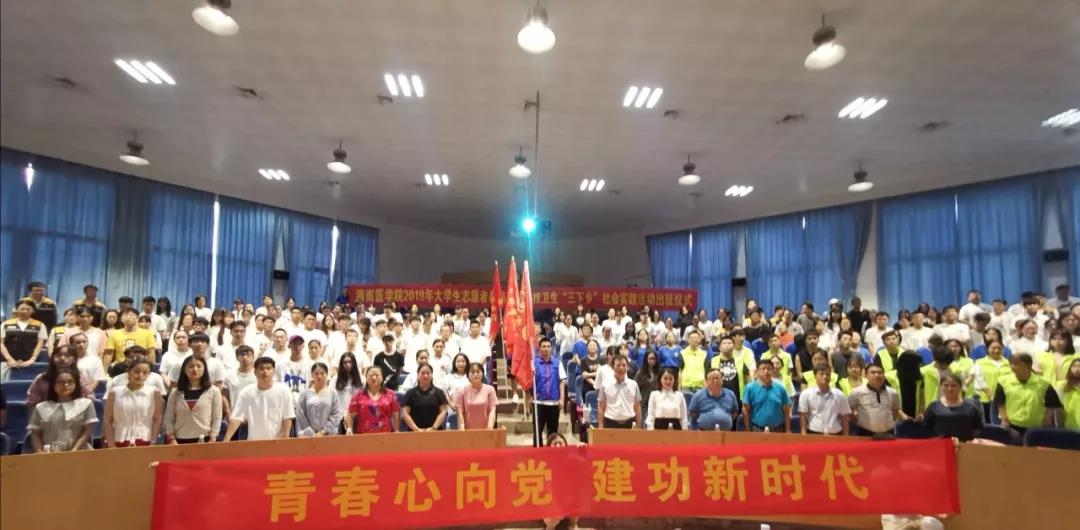 7月13日下午3:00,海南医学院2019年大学生志愿者暑期文化科技卫生“三下乡”社会实践活动动员大会在多功能报告厅隆重举行。学校学生工作处邝家旺处长、校团委曾梅书记、热带医学与检验医学院党委郑文芝书记、口腔医学院党委薛伟波书记、第一临床学院张万科副书记、国际教育学院袁勇副书记、药学院张小坡副院长出席会议并在主席台就座。二级学院团委书记,社会实践指导教师及社会实践队员400余人共同参加了动员大会。会议由校团委林仕芬老师主持。
