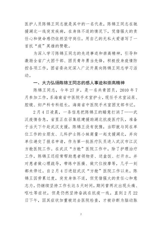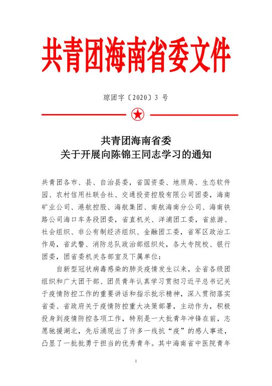 共青团海南省委关于开展向陈锦王同志学习的通知.pdf