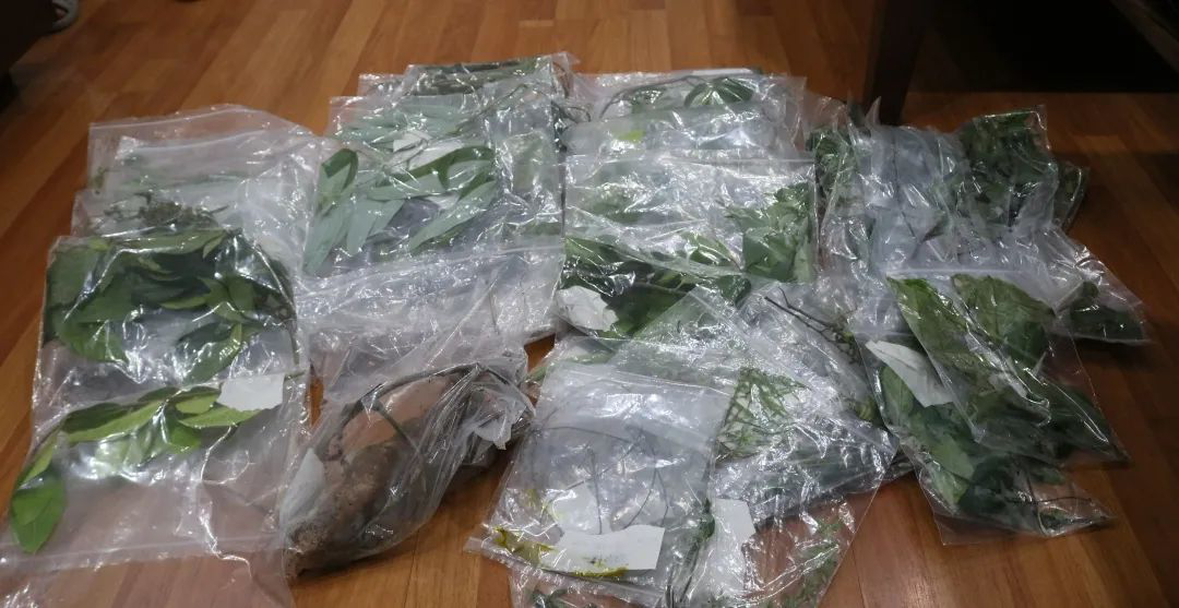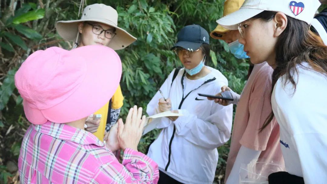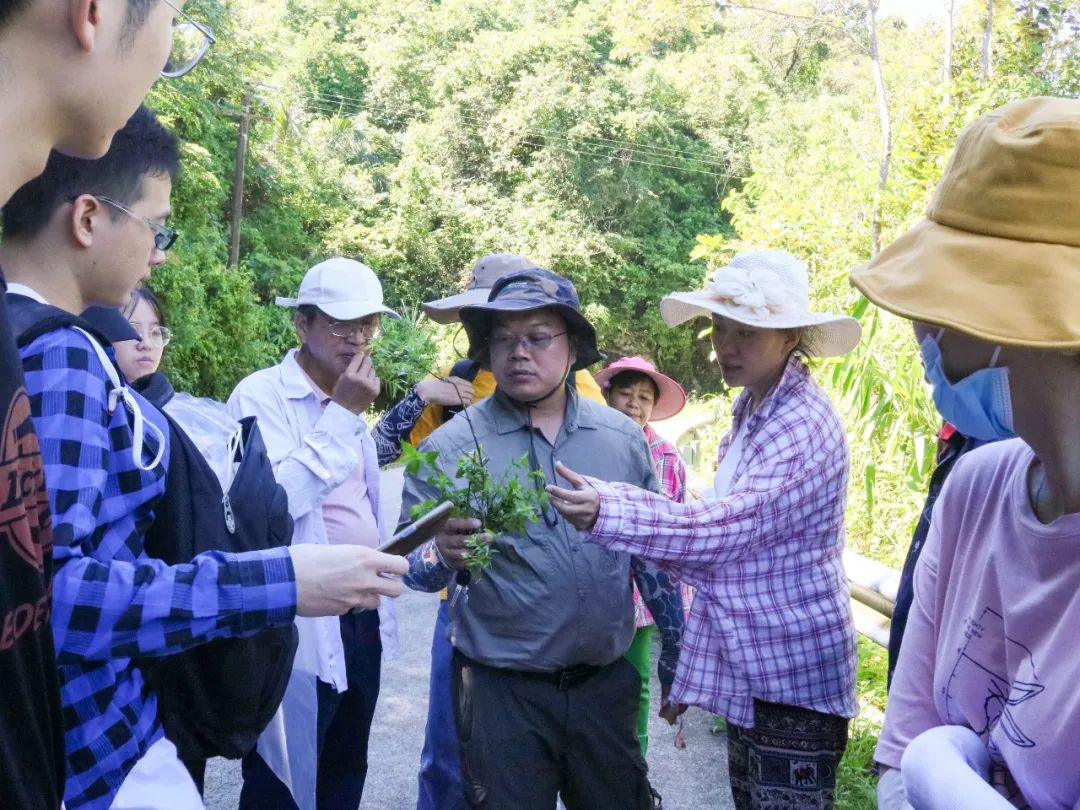 我们到达了七叉镇大章村黎医吉海连医生的家里后,吉医生一家十分热情地接待了我们,并带我们上山采药,教我们识别各种各样的黎药,介绍了它们的功效和用途。一路上队员们认真听讲、细心观察一草一木、并采摘具有代表性的黎药以制作标本。