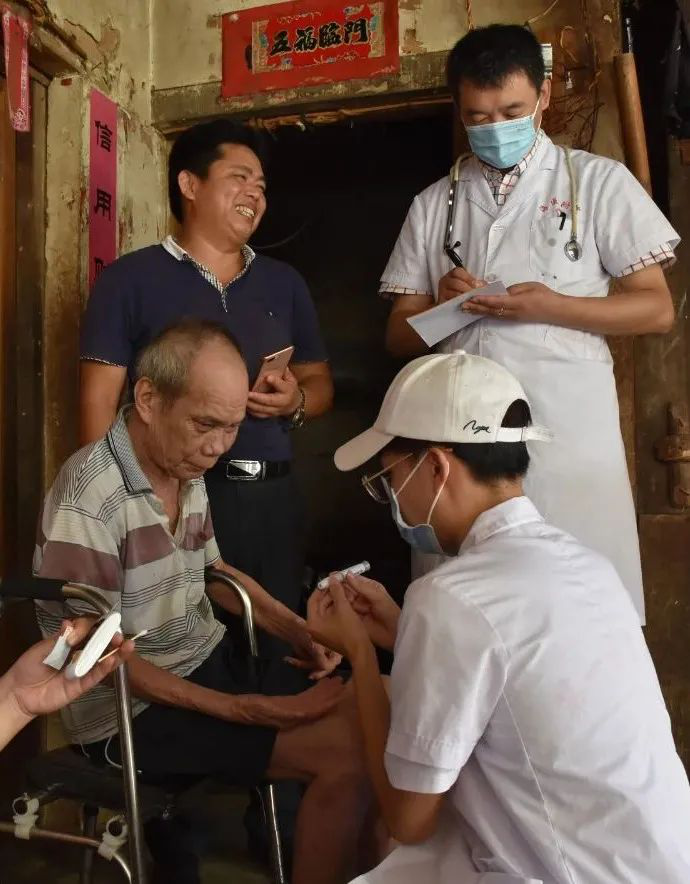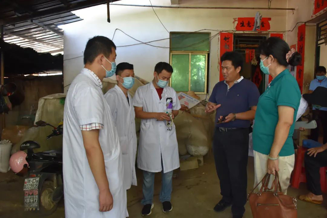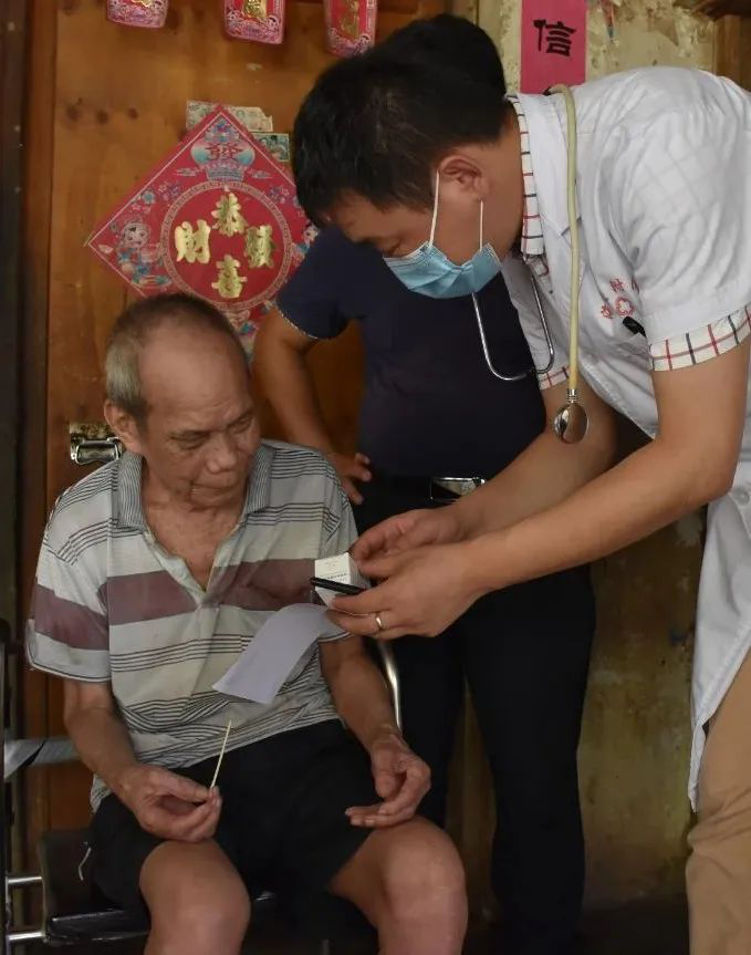10时30分,海南医学院第一临床学院党委书记冯琼、副书记张万科在番豆村驻村第一书记王基鸿的陪同下,带领专家开展送医入户活动,对番豆村对口扶贫户进行走访,为贫困户提供高质量的医疗服务。其中,较为特殊的符某一户,是我院继2018年、2019年精准医疗扶贫活动后第三次走进他的家中,通过海南医学院第一附属医院心内科张玉卓医生的问诊,我们认识到年迈的阿公因年初摔伤以及常年的高血压,体型相较去年变得十分消瘦,并且心源性水肿的问题仍未解决。了解情况后,张玉卓医生联合村卫生院的文医生为其制定了长期跟踪治疗计划,切实提供高质量医疗服务,实现精准医疗扶贫。