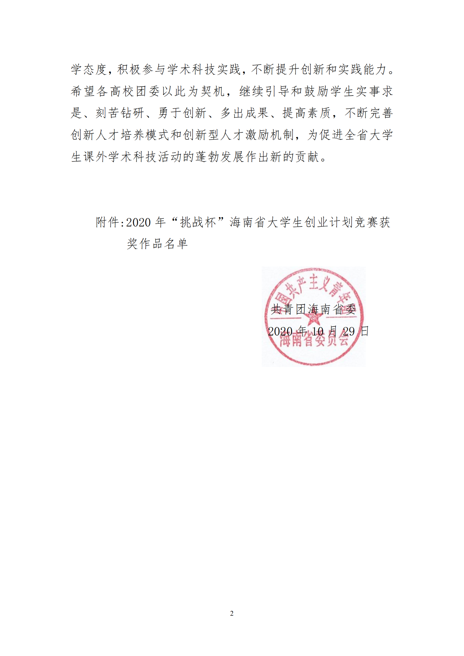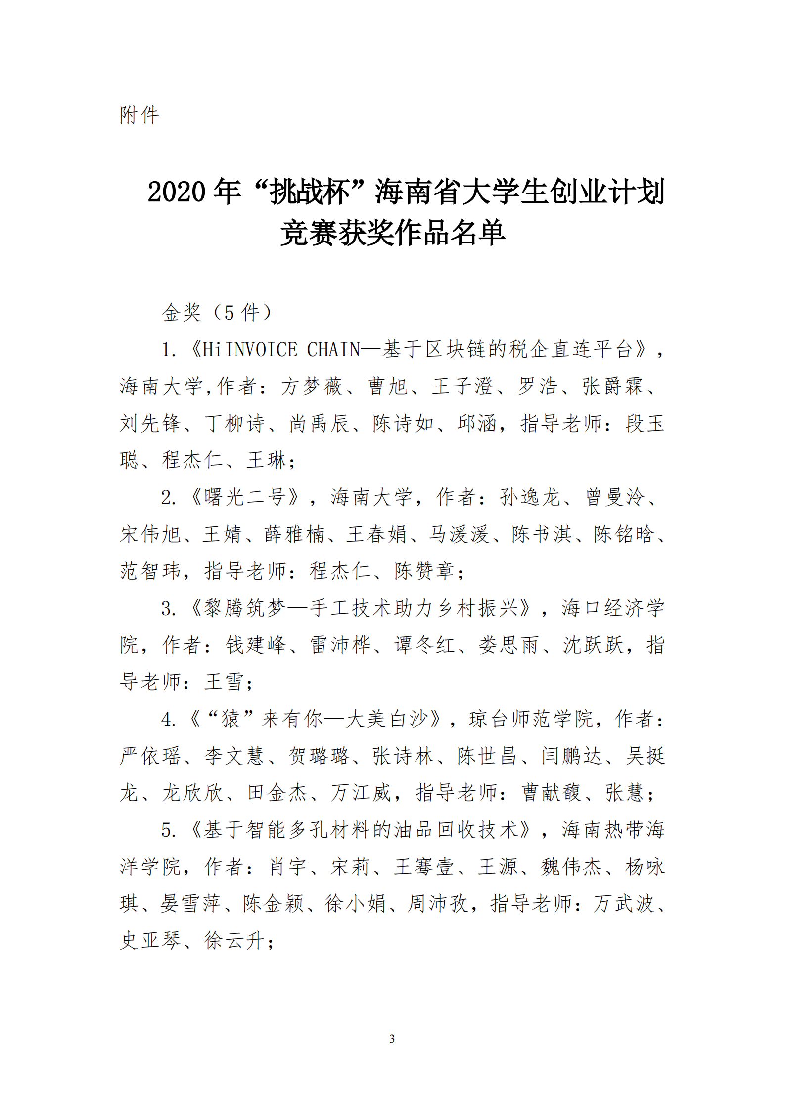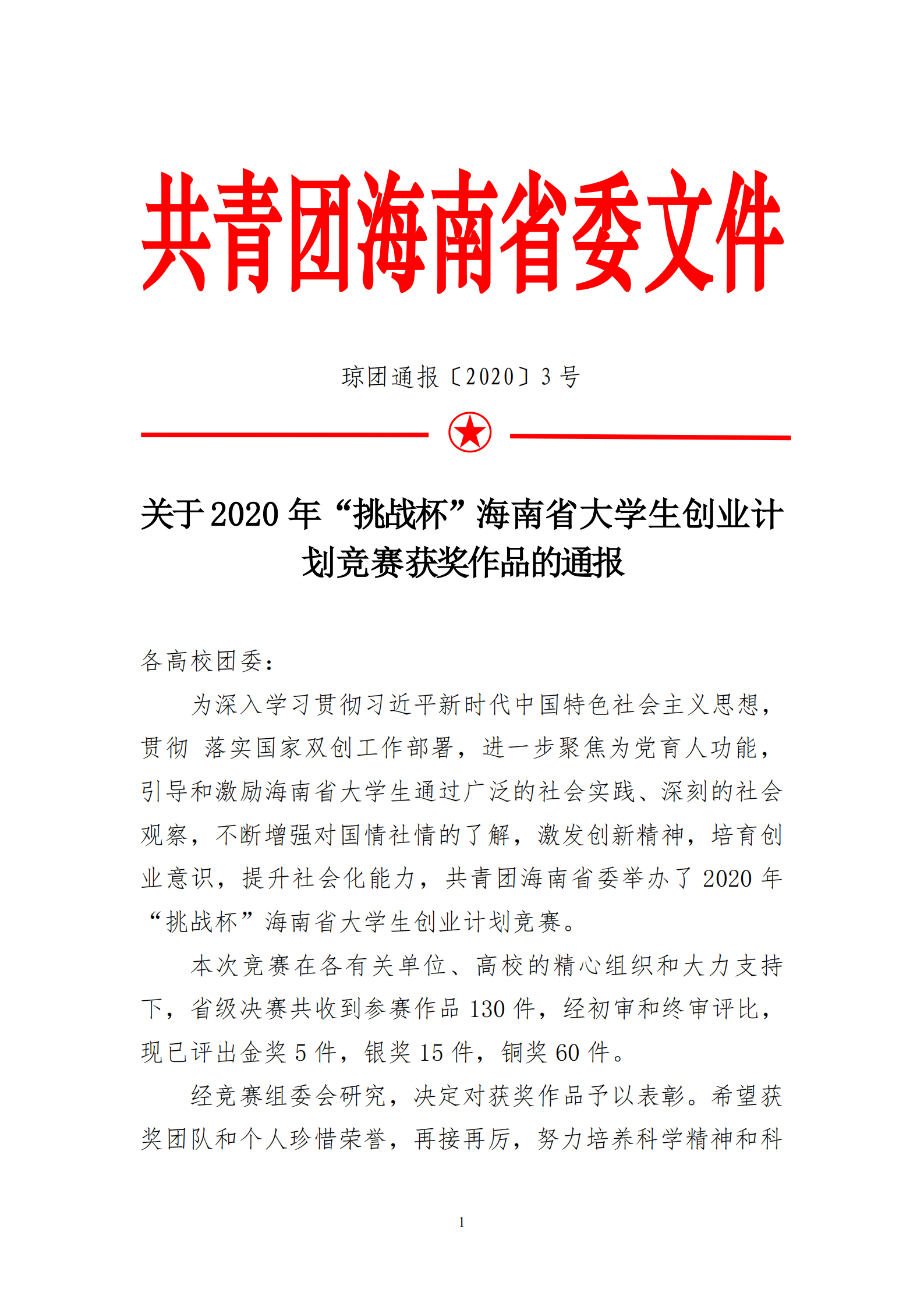 关于2020年“挑战杯”海南省大学生创业计划竞赛获奖作品通报