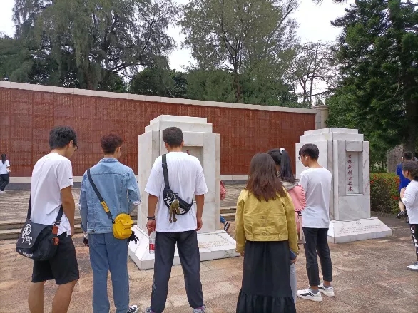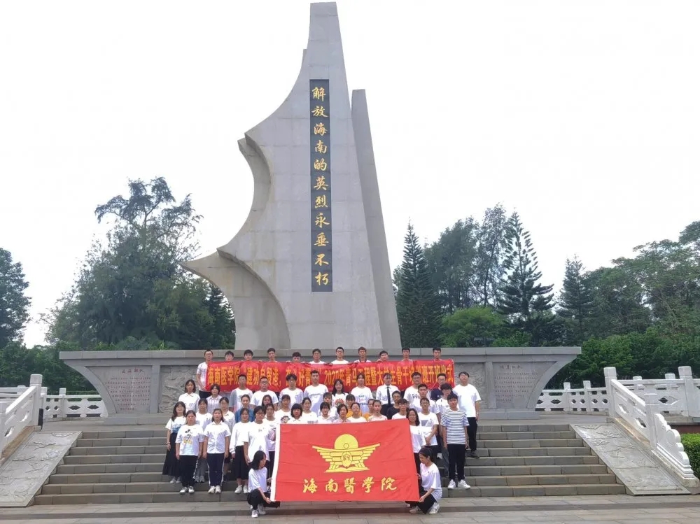 今年是中华人民共和国成立71周年。10月31日早上八点,海南医学院2020年青马学生代表、新入团团员代表前往解放海南岛战役烈士陵园开展了一场特别的开班仪式。“建功自贸港,奋斗好青年”2020年青马工程暨大学生骨干培训班开班仪式有以下几项:学员们和新入团团员代表在团旗下进行了庄严的宣誓、学员代表做了表态发言、全体唱国歌/团歌、老师给新团员佩戴团徽、老师寄语。最后,团委揭秋云老师寄语2020年青年骨干和新入团团员:要向革命先烈致敬,学习他们舍生取义的爱国主义精神和革命精神,不忘初心、牢记使命,将每个人的中国梦汇聚成整个民族的中国梦,为实现中华民族的伟大复兴贡献青春力量。开班仪式结束后,大家进行了参观寻访、瞻仰先烈活动。