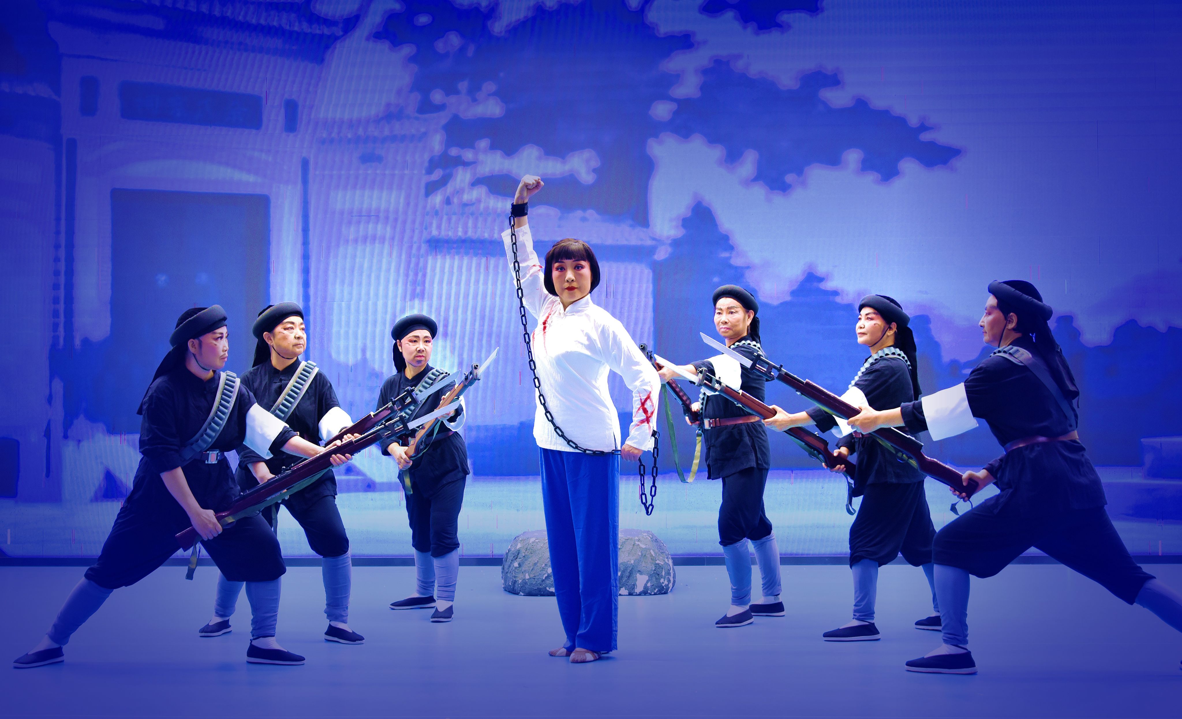 余建玲饰柯湘,李月妹、宋瑛、梁姬、张学兰、张岩、严东青饰团兵