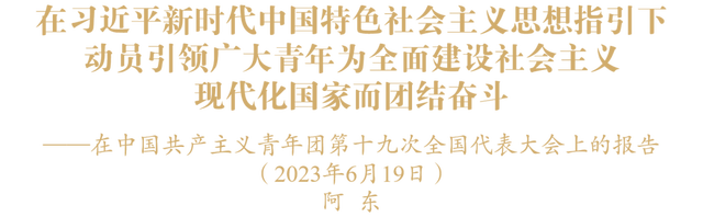 中国共产主义青年团第十九次全国代表大会,是在以习近平同志为核心的党中央带领全党全国各族人民迈上全面建设社会主义现代化国家新征程、向第二个百年奋斗目标进军的关键时刻召开的一次十分重要的大会。