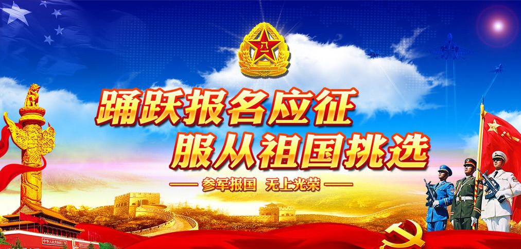 登陆全国征兵网(网址:http://www.gfbzb.gov.cn)进行兵役登记和征兵报名。